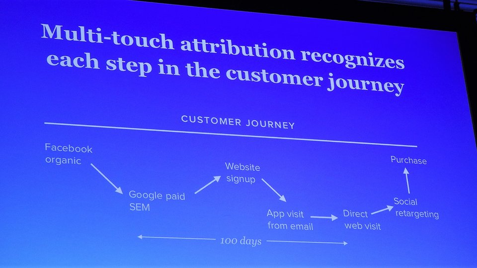 DiNunzio showed a slide demonstrating the benefit of "multi-touch" attribution, which maps out every step in the social media customer journey.